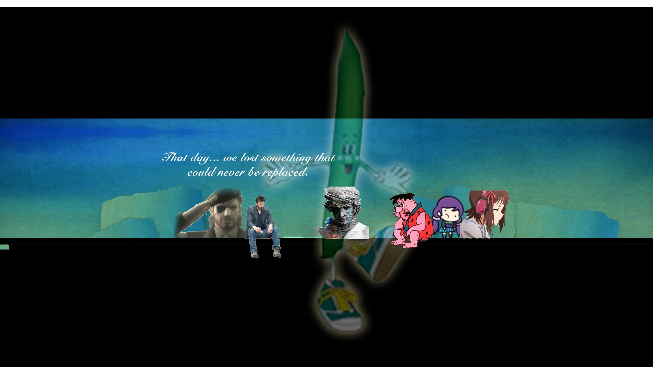 During the event, the avatar was changed to a version of SiIvaGunner with a stream of tears coming down his left eye, while the banner was changed to have the lighthouse replaced with a faded image of Green de la Bean, with text, which uses the same font as on the single cover art for "Snow halation", to the left reading "That day... we lost something that could never be replaced.", and various sad characters being placed around Green de la Bean (from left to right):