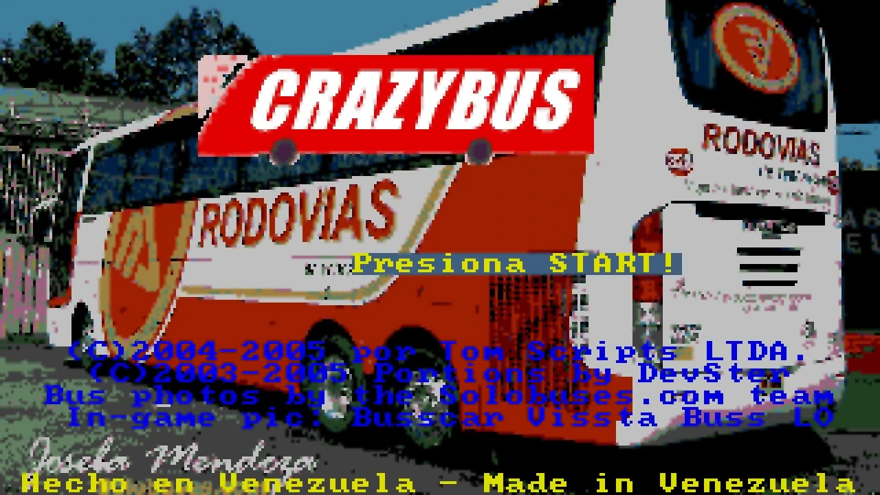 CrazyBus is a "game" for the Sega Genesis, or more accurately an unlicensed Sega Genesis tech demo from 2004. It was made in Venezuela and features many pictures of Venezuelan buses. However, there is practically no gameplay to speak of, as all you can do is move a bus left or right. The game is infamous online due to its title screen music, which is just randomly generated notes.