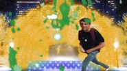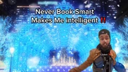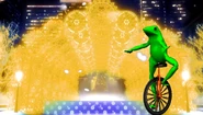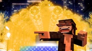 The visual format of these rips uses the first shot of the "Snow halation" music video, where it pans down from the sky and lands with the stage in center; this shot is taken as a stitched still and panned down manually while fading in from black, reaching the bottom at around 0:10 when the introduction to the song is finished, and the first verse is about to start. At the same time, a still of a character relevant to the mashup, which is usually placed on the right side of the video, fades in from transparency between 0:07-0:10. Once these two animations finish, the image typically holds still for the majority of the mashup. At 3:10, when the third chorus begins, the background image will often change to show the stage with yellow lights, matching the music video where the lights change color at that point. In addition to this, most rips will show an animated overlay of snow falling throughout the entire video.
