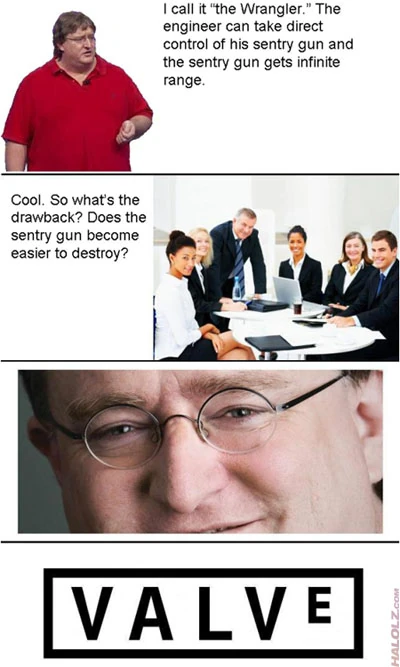 This image, taken directly from the website halolz.com, refers to the Wrangler, an unlockable weapon for the Engineer in Team Fortress 2. | |||