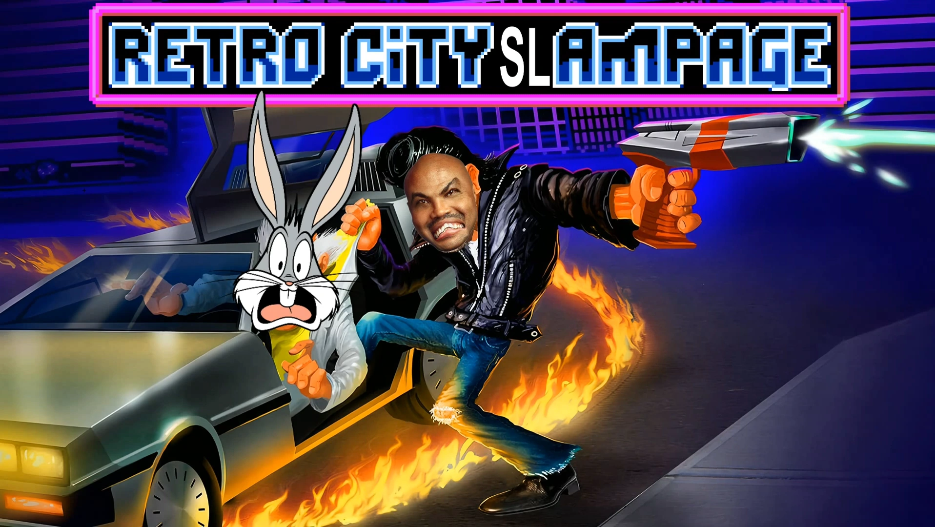 Instead of the thumbnail, the video uses an edited version of Retro City Rampage's box art with the title edited to read "Retro City SLampage", Charles Barkley's head edited over The Player's and liquified to look angry, and Bugs Bunny's head edited over Doc Choc's.