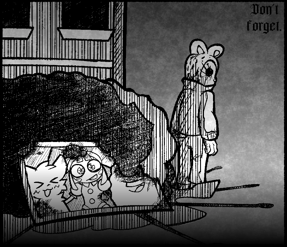 Despite not being shown in the rip, the image for the bad ending is also replaced. The image (which uses a similar art style to the original) depicts Max Design Pro looking back at Nugget's body, which has a picture of Boykisser, Pomni and Nugget leaning against it. The top half of Nugget's face is burned off of the picture. The text "All i [sic] need is you." is replaced with text reading "Don't forget."