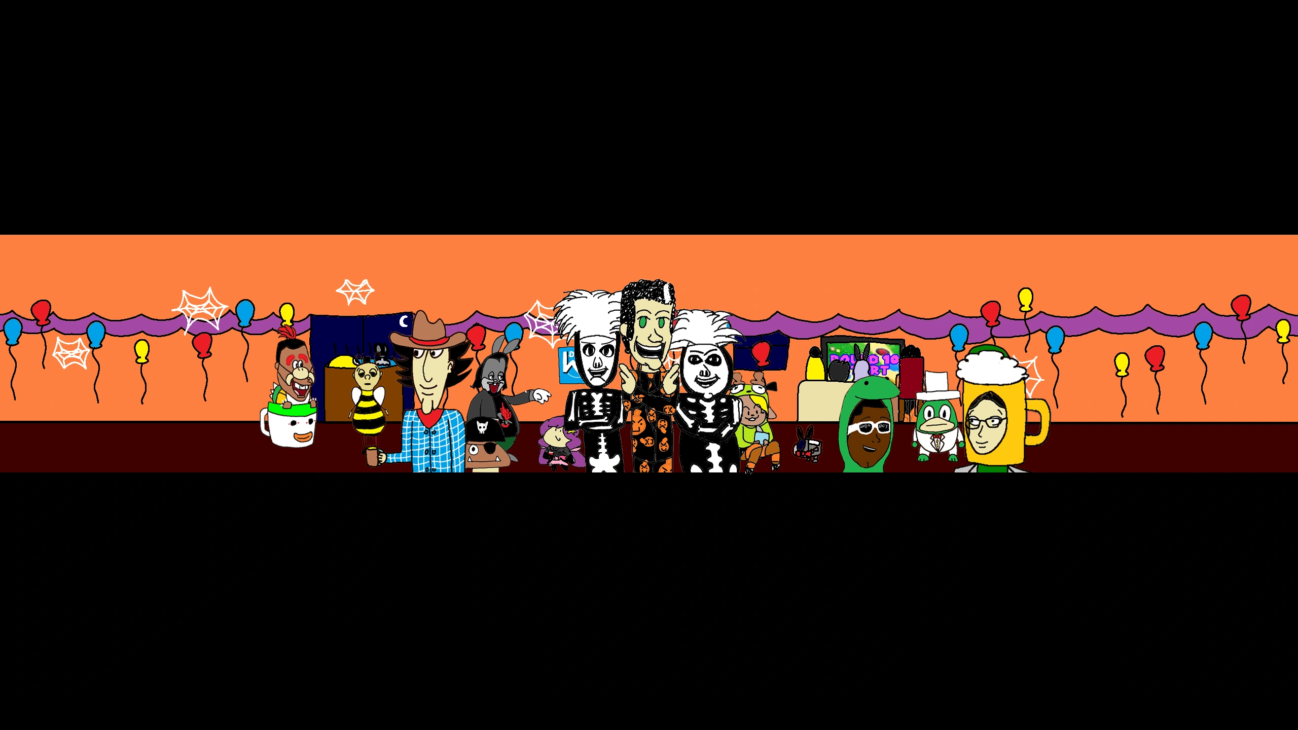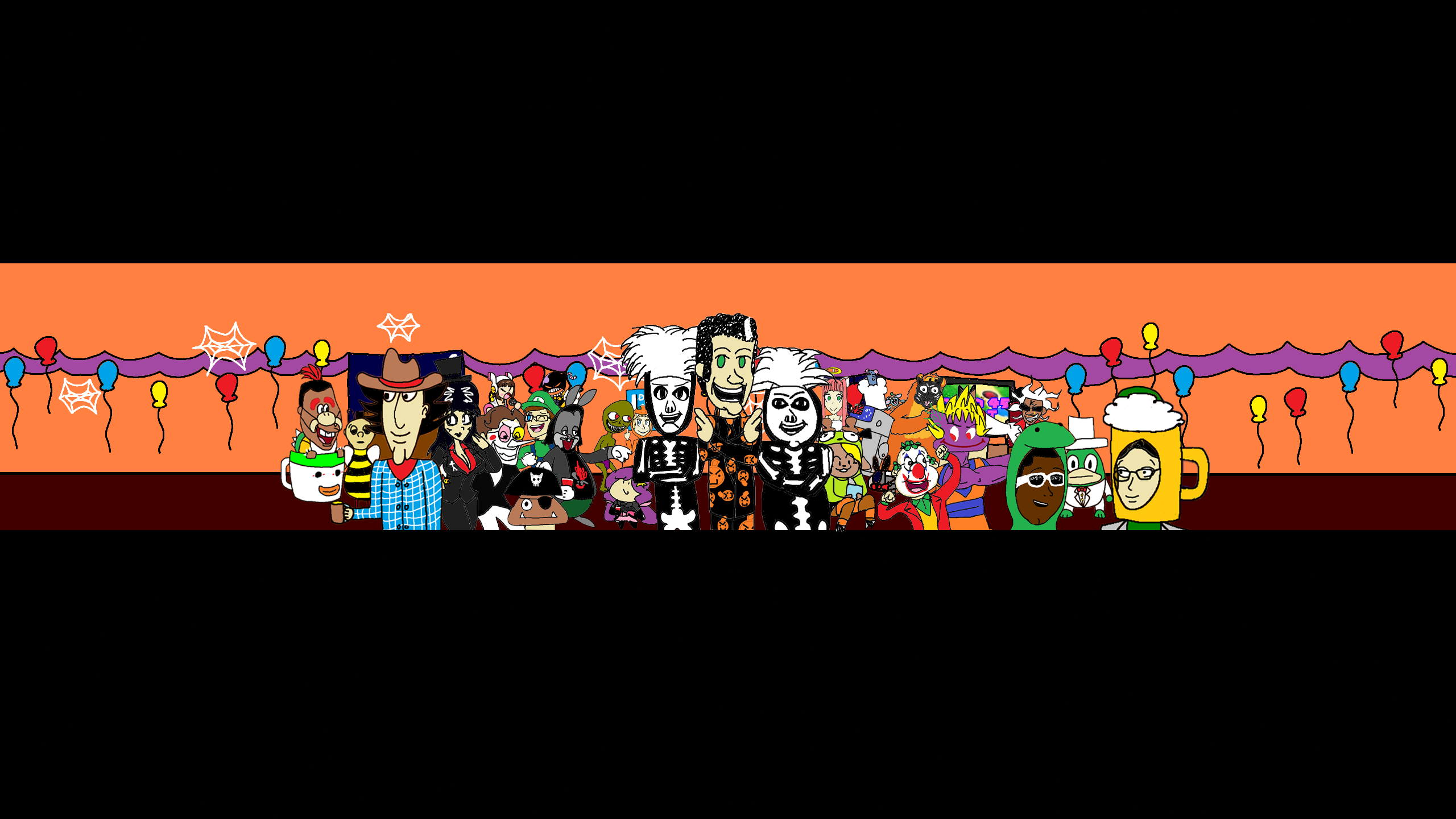 The YouTube and Twitter account avatars were changed to David S. Pumpkins edited to resemble SiIvaGunner. The banner featured the house party from "Intro - Wood Man's Halloween House Party (ft. David S. Pumpkins)", with David S. Pumpkins and his backup dancers in the center and Wood Man playing Mario Party 7 with Donkey Kong, Angry Joe, and Takane Shijou in the background. Over the course of the event, the banner was changed to add more of the characters from "Intro" and update the Mario Party 7 game's progress (see #Gallery).